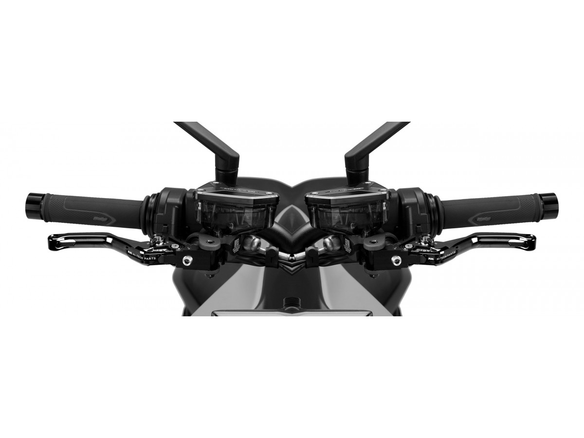 Zestaw regulowanych, sportowych klamek - komplet: dźwignia sprzęgła, dźwignia hamulca i odpowiednie mocowania do motocykla.