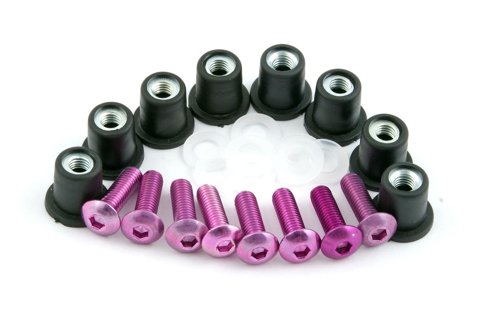 Cena za 1 komplet - w opakowaniu 8 śrubek, 8 nylonowych podkładek i 8 nakrętek w gumowej otulinie.