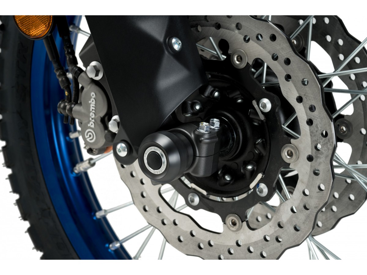 Protektory osi kół przednich - dodatkowe zabezpieczenie motocykla w razie nieprzewidzianych zdarzeń.