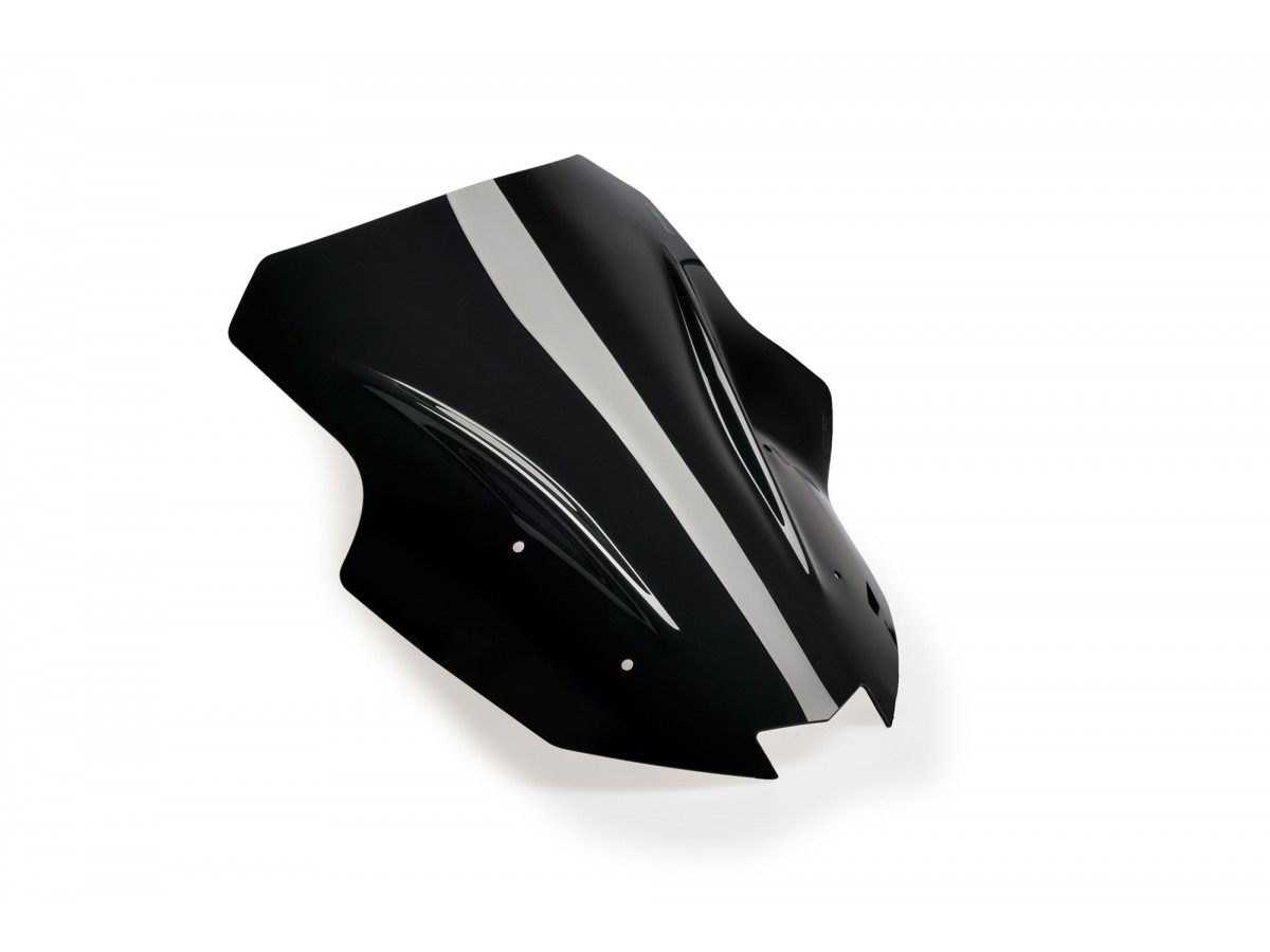 Szyba o długości 48 cm, o 6 dłuższa od fabrycznej. Kształt z podwójnym garbem. Skutecznie poprawia ochronę przed wiatrem. Idealnie pasuje do Kawasaki Ninja 1000 SX. Model PUIG: 20471.