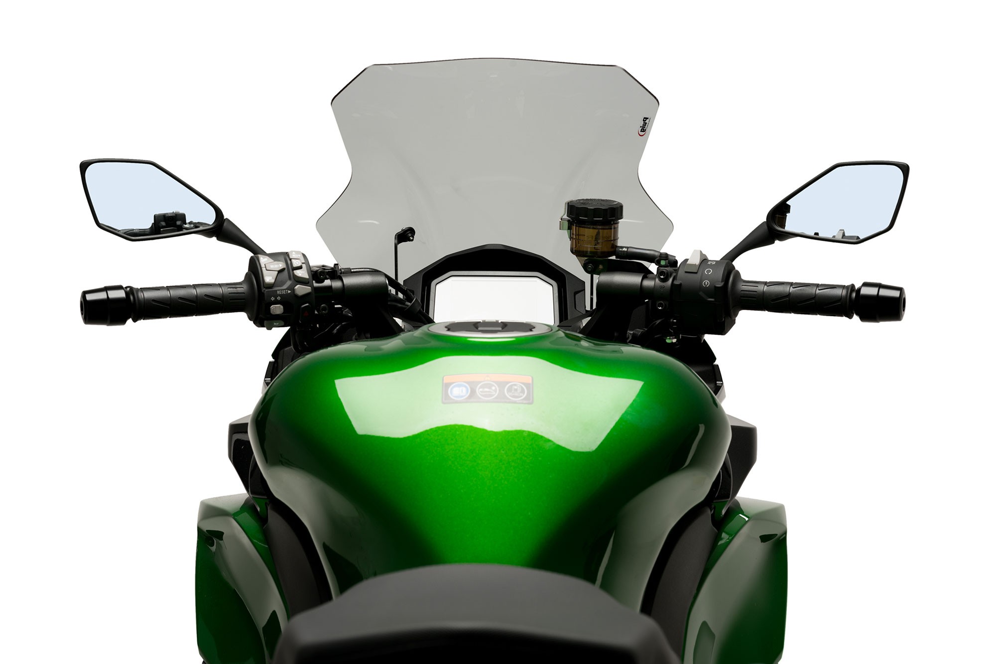 Szyba o długości 48 cm, o 6 dłuższa od fabrycznej. Kształt z podwójnym garbem. Skutecznie poprawia ochronę przed wiatrem. Idealnie pasuje do Kawasaki Ninja 1000 SX. Model PUIG: 20471.