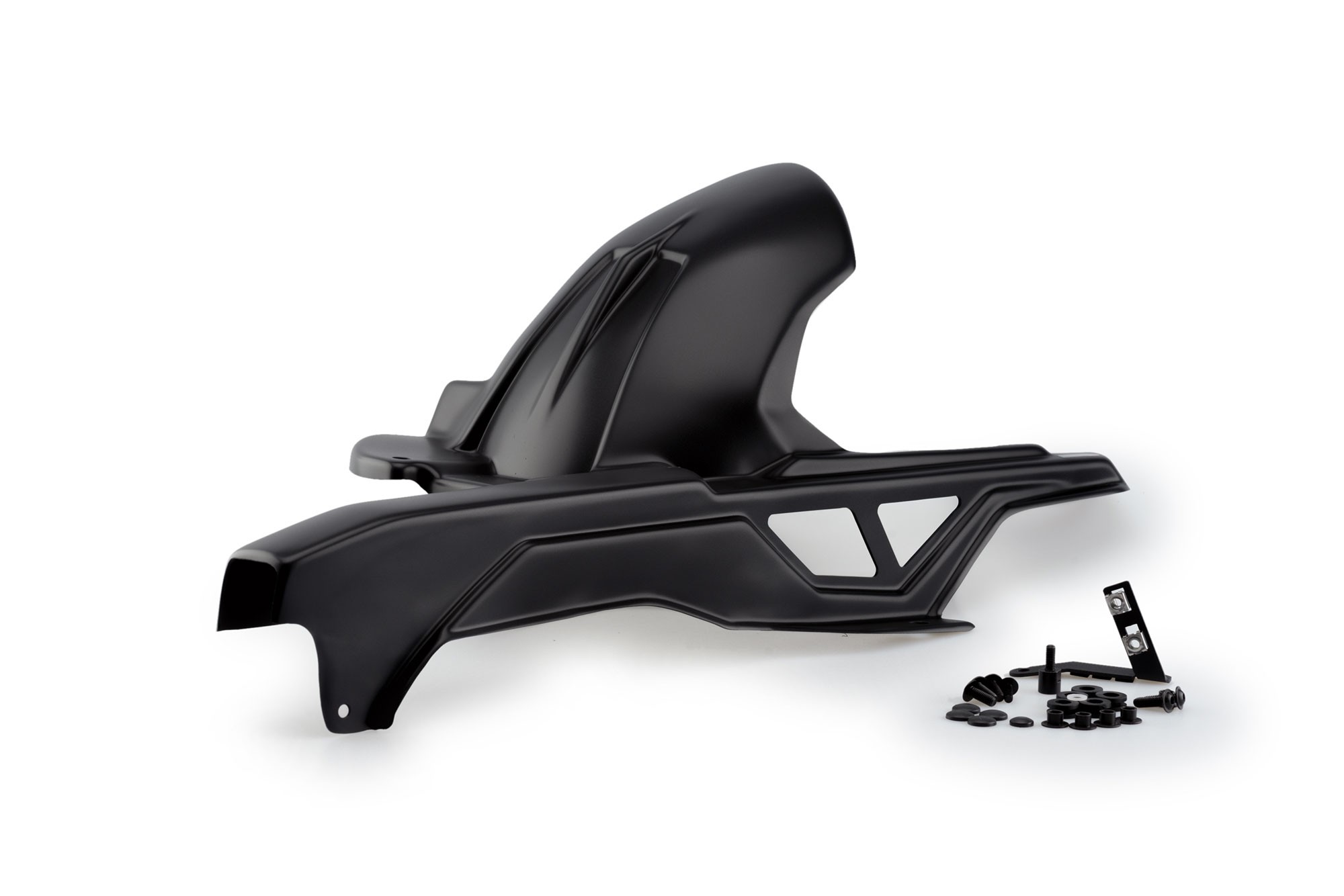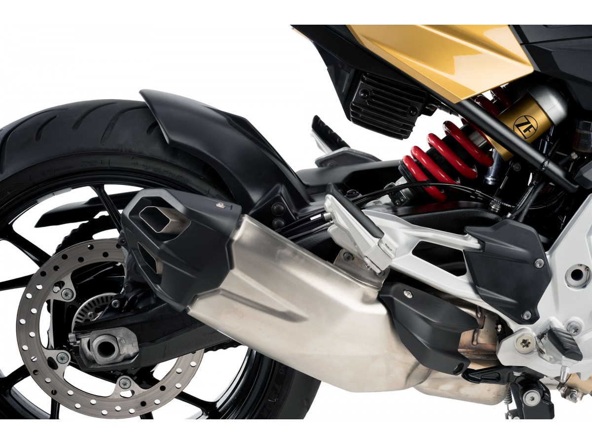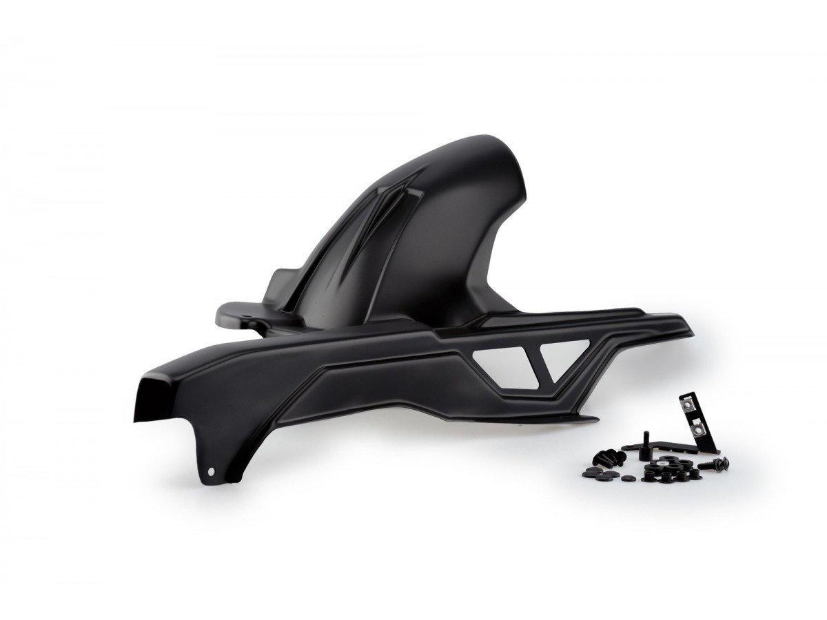Zintegrowana osłona łańcucha. W zestawie komplet mocowań do danego modelu motocykla.