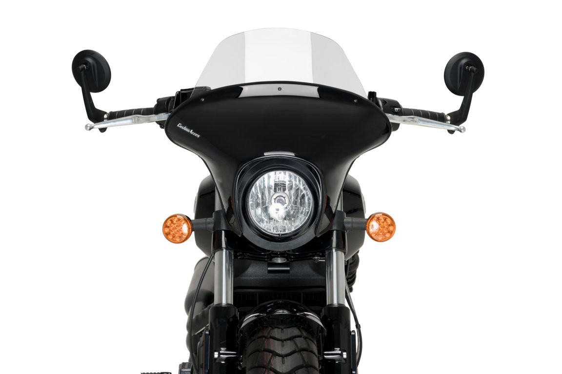 Dwuczęściowa półowiewka Batwing SML świetnie chroni przed wiatrem. To mniejszy brat dużego Batwinga. Szyba występuje w dwóch długościach (krótka lub długa) oraz kolorach (dymiona lub ciemna) do wyboru.