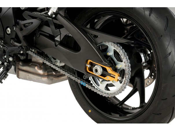 Napinacze PUIG umożliwiają precyzyjne ustawienie i kontrolę napięcia łańcucha. Zaznaczona skala ułatwia kontrolę.
