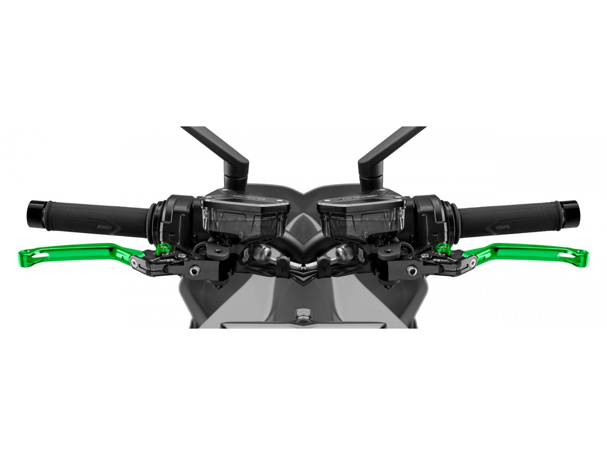 Zestaw regulowanych, sportowych klamek - komplet: dźwignia sprzęgła, dźwignia hamulca i odpowiednie mocowania do motocykla.