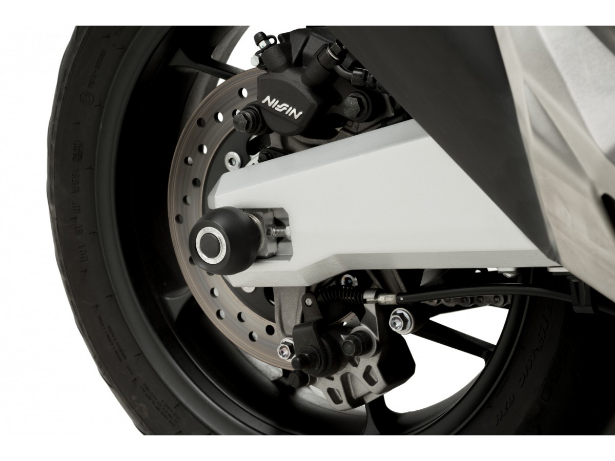 Protektory osi kół tylnych - dodatkowe zabezpieczenie motocykla w razie nieprzewidzianych zdarzeń.
