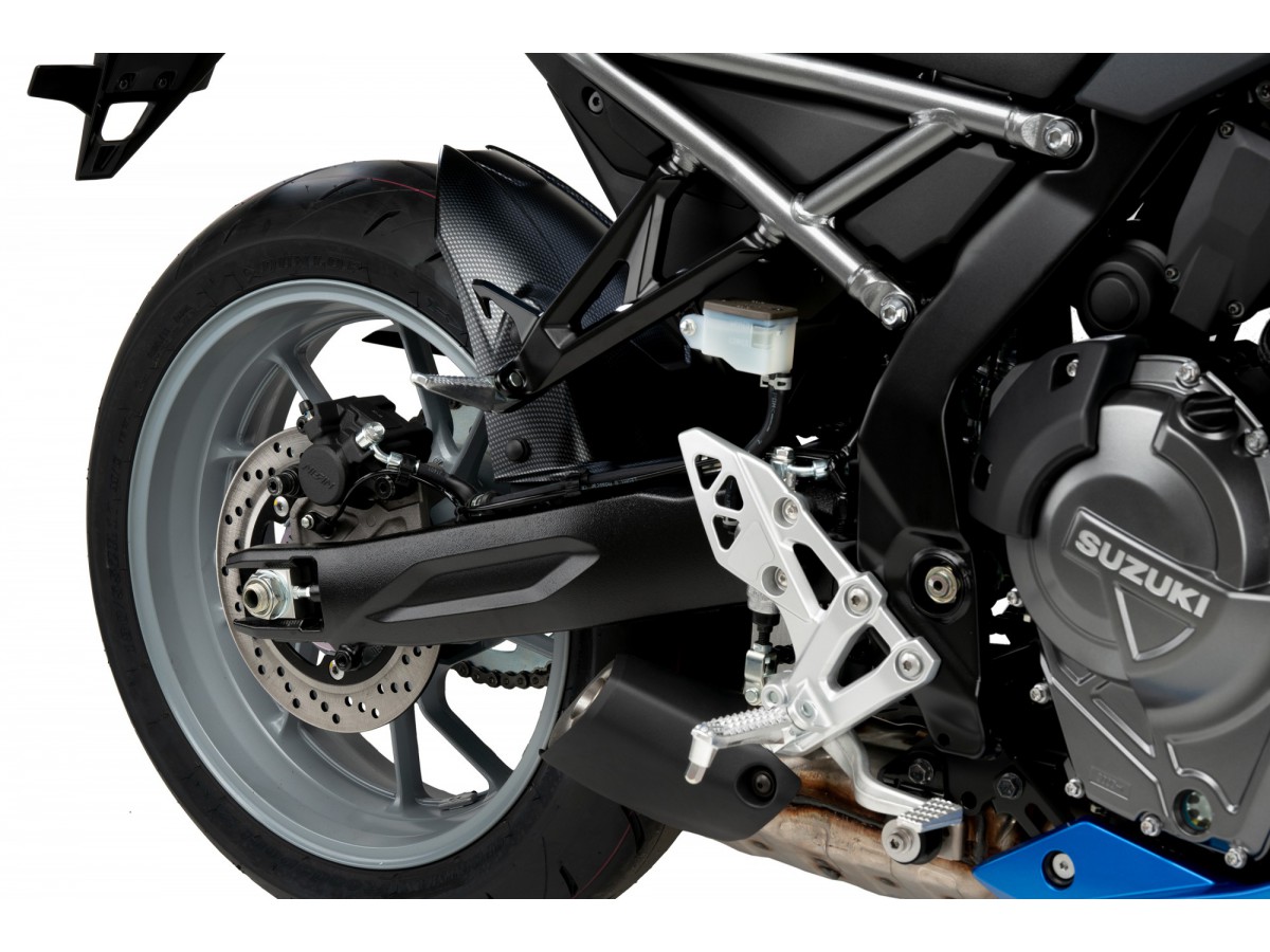 Zintegrowana osłona łańcucha. W zestawie komplet mocowań do danego modelu motocykla.