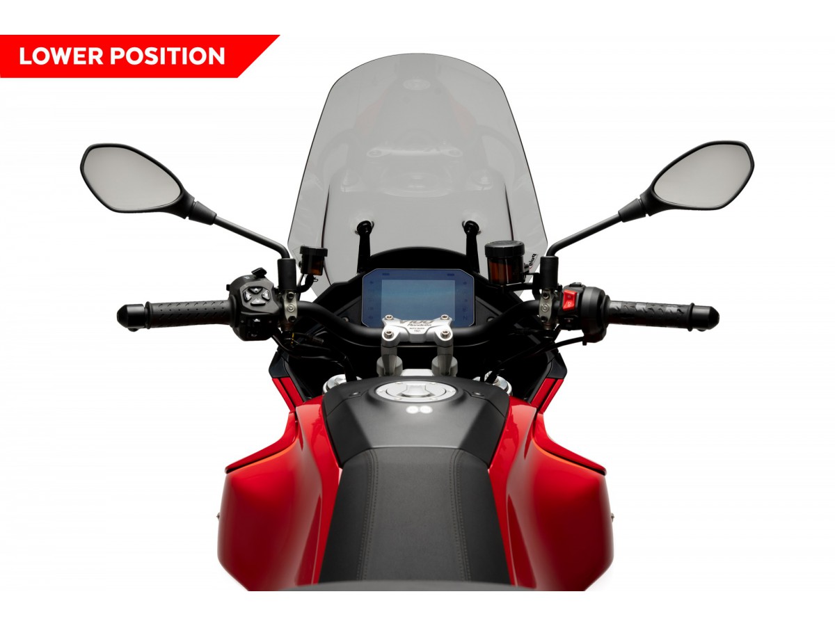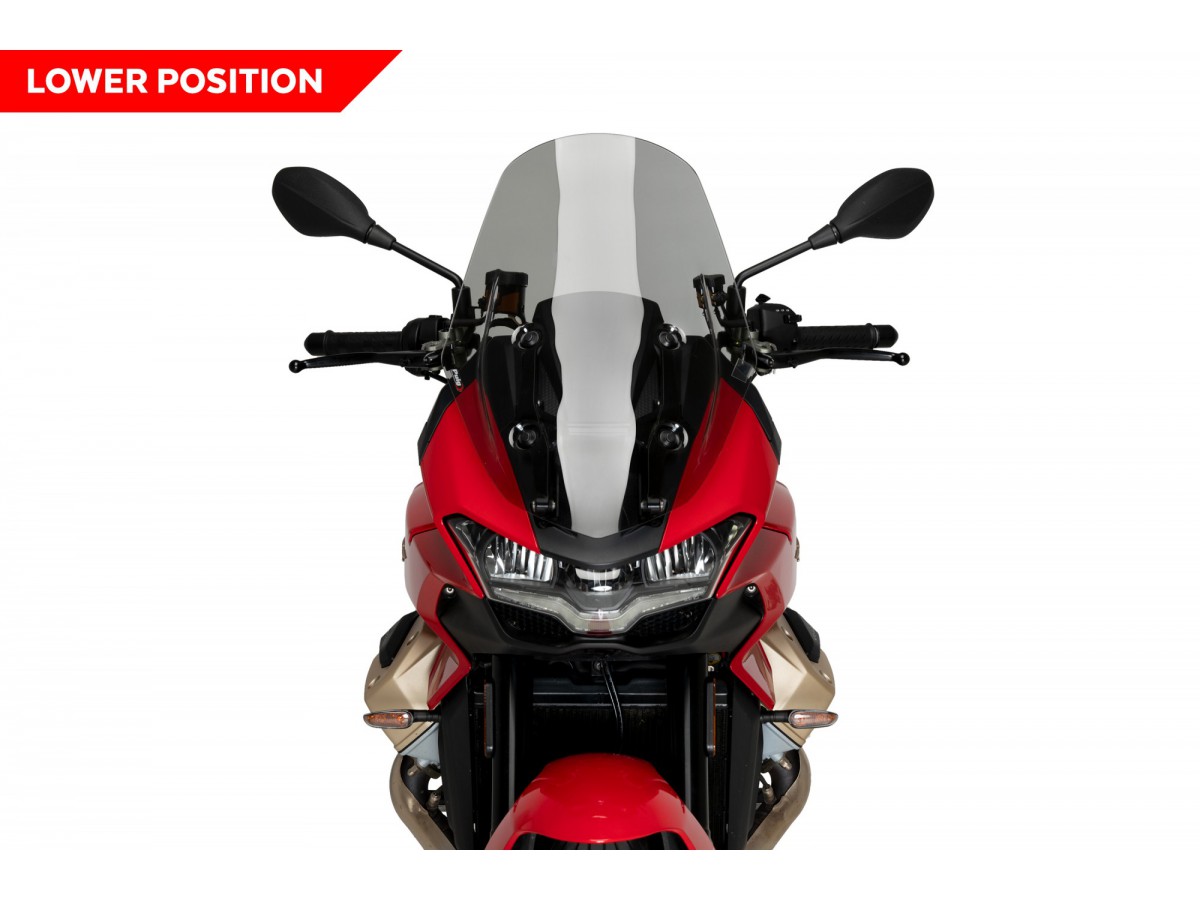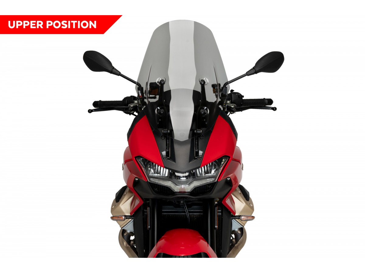 Dodatkowe przedłużenie w turystycznej szybie PUIG zapewnia doskonałą ochronę przed wiatrem nawet przy długich podróżach.