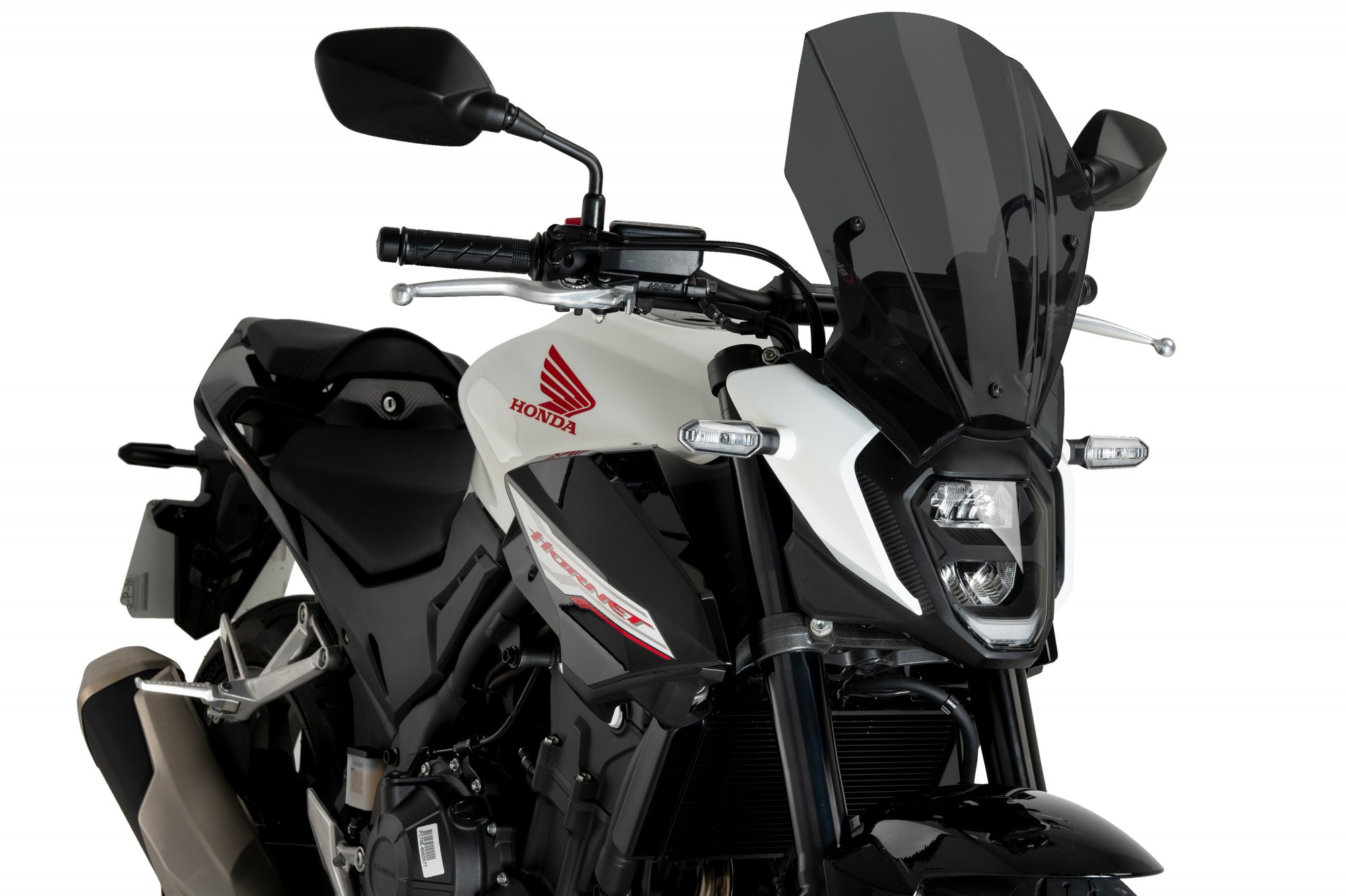 Owiewka o długości 40,5 cm. Wersja Touring (dłuższa). Poprawia ochronę od wiatru o 67%. Zaprojektowana do Honda CB500 Hornet. Model PUIG: 21935.