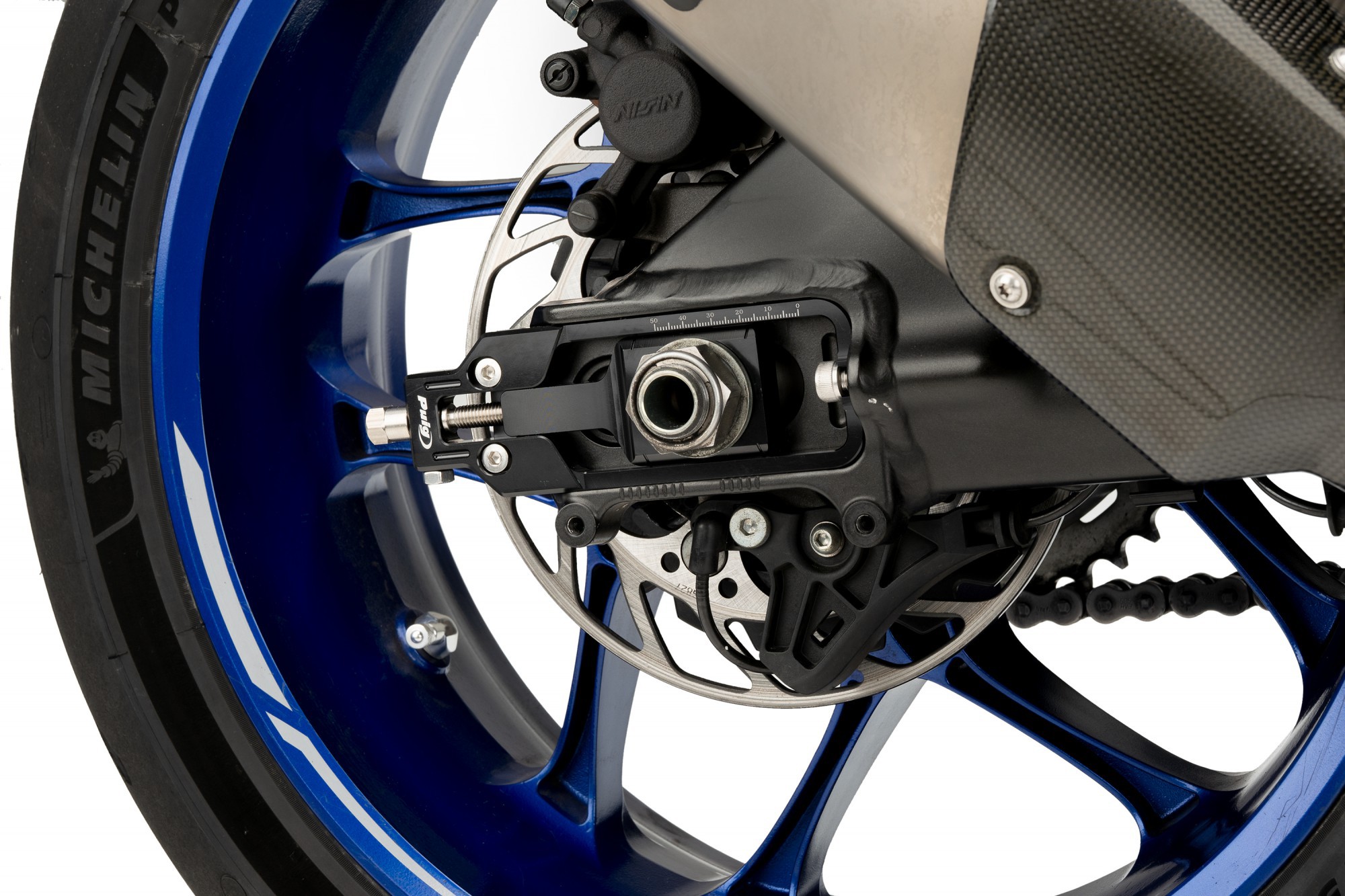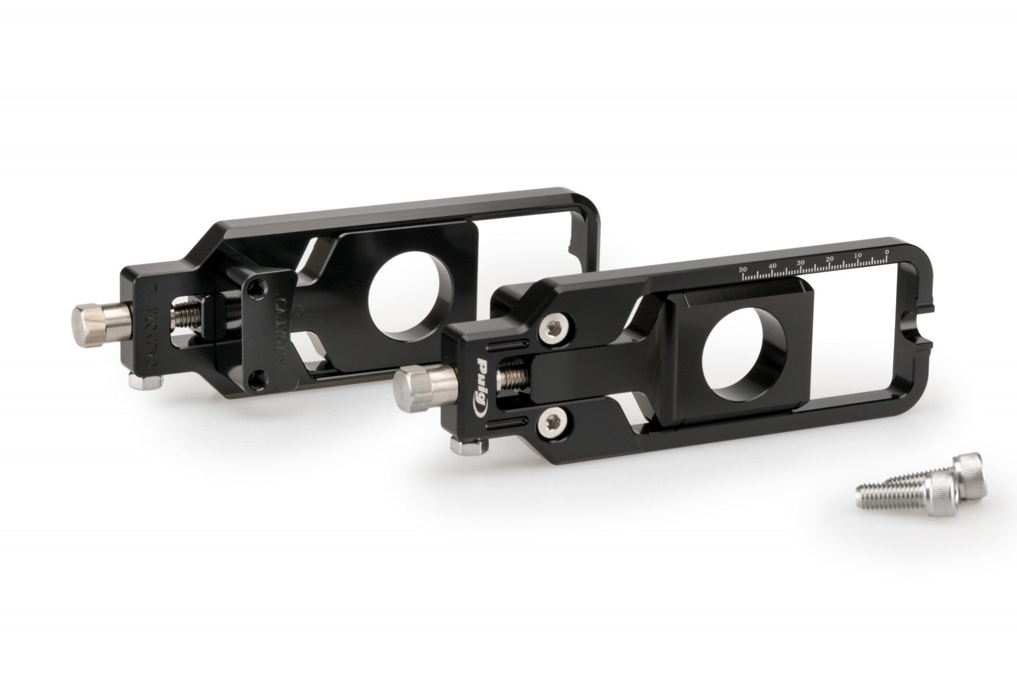 Napinacze PUIG umożliwiają precyzyjne ustawienie i kontrolę napięcia łańcucha. Zaznaczona skala ułatwia kontrolę.