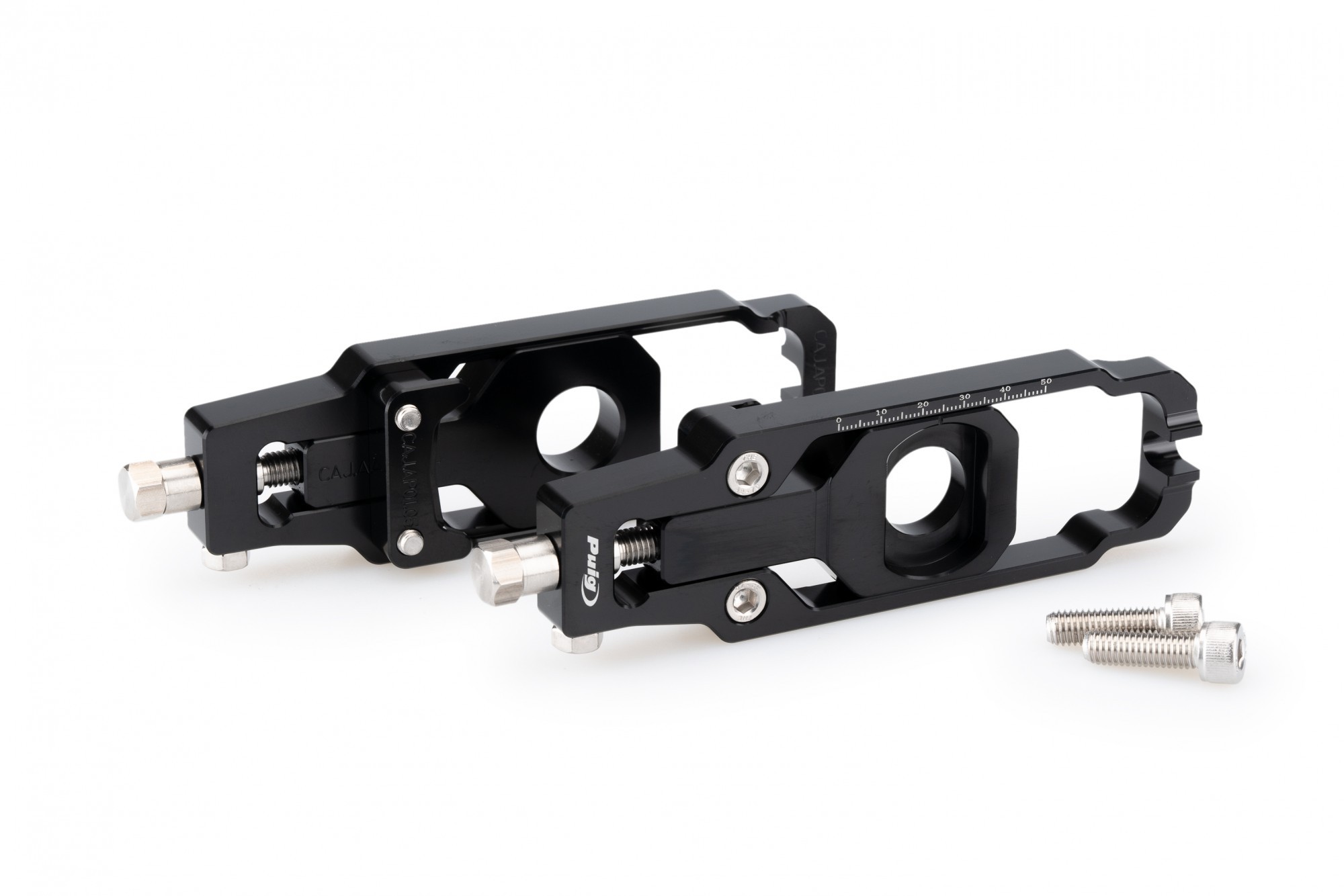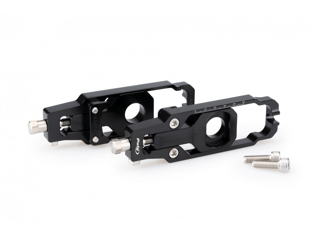 Napinacze PUIG umożliwiają precyzyjne ustawienie i kontrolę napięcia łańcucha. Zaznaczona skala ułatwia kontrolę.