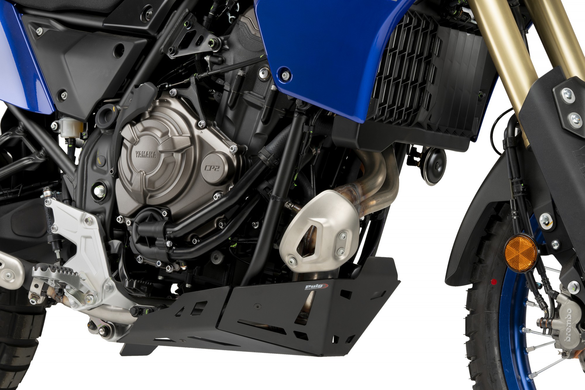 Aluminiowa płyta pod silnik chroni elementy motocykla przed uszkodzeniem podczas jazdy off road.