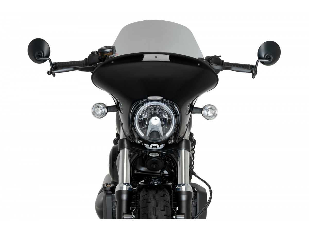 Dwuczęściowa półowiewka Batwing SML świetnie chroni przed wiatrem. To mniejszy brat dużego Batwinga. Szyba występuje w dwóch długościach (krótka lub długa) oraz kolorach (dymiona lub ciemna) do wyboru.