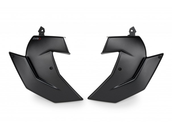 Chłodnica nadaje sportowy, spersonalizowy wygląd motocykla, poprawia wydajność hamowania i zmniejsza turbulencje przy przednim kole, tworząc częściową osłonę koła./p>