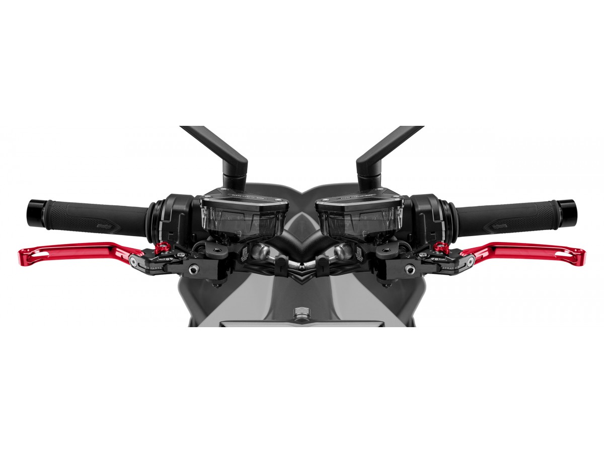 Zestaw regulowanych, sportowych klamek - komplet: dźwignia sprzęgła, dźwignia hamulca i odpowiednie mocowania do motocykla.