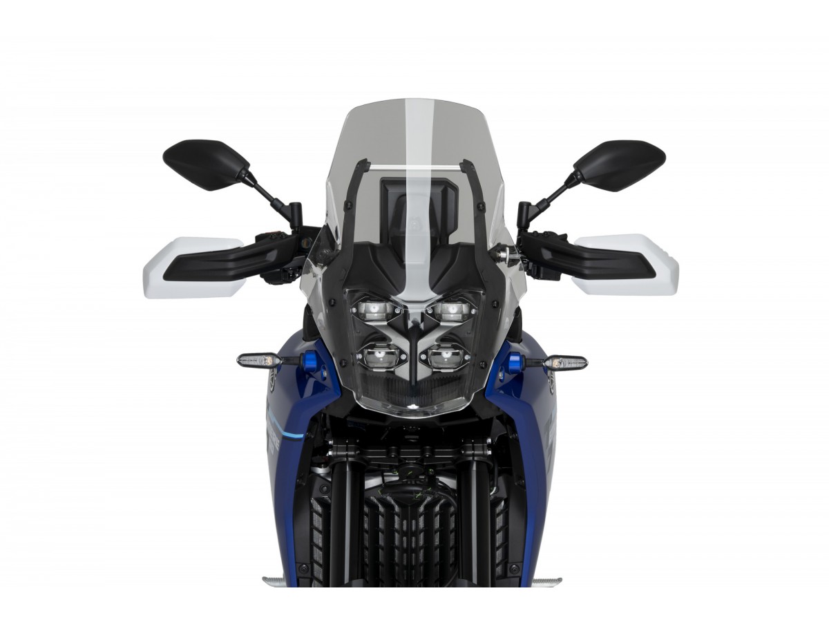 Konstrukcja łączy w sobie podwójną funkcję szyby i osłony reflektora, zachowując czyste linie idealnie dopasowane do przodu motocykla. Dolna część chroni przednią optykę, a górna zawiera zintegrowane deflektory, które poprawiają przepływ powietrza i nadają sportowy, elegancki i dyskretny wygląd.
