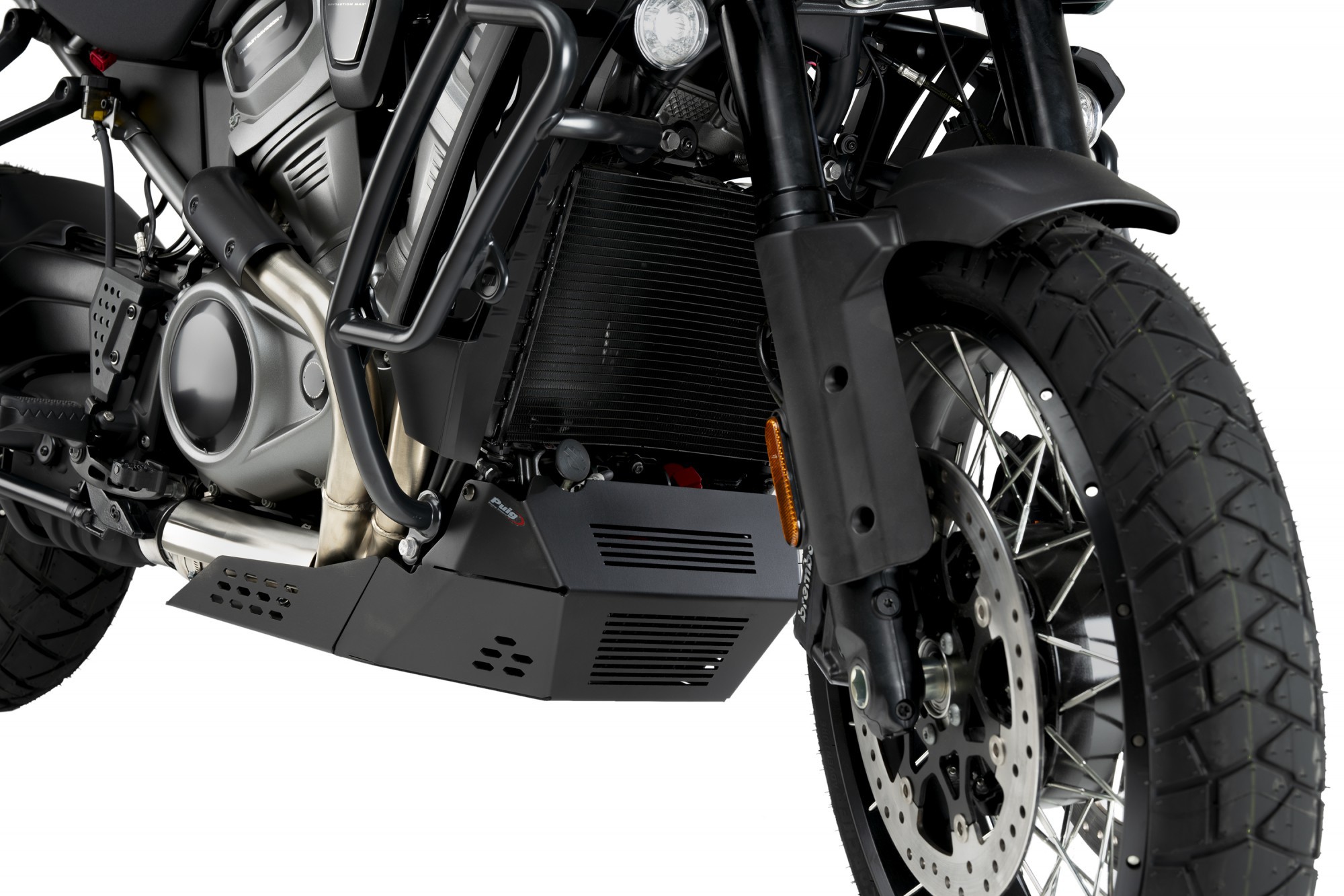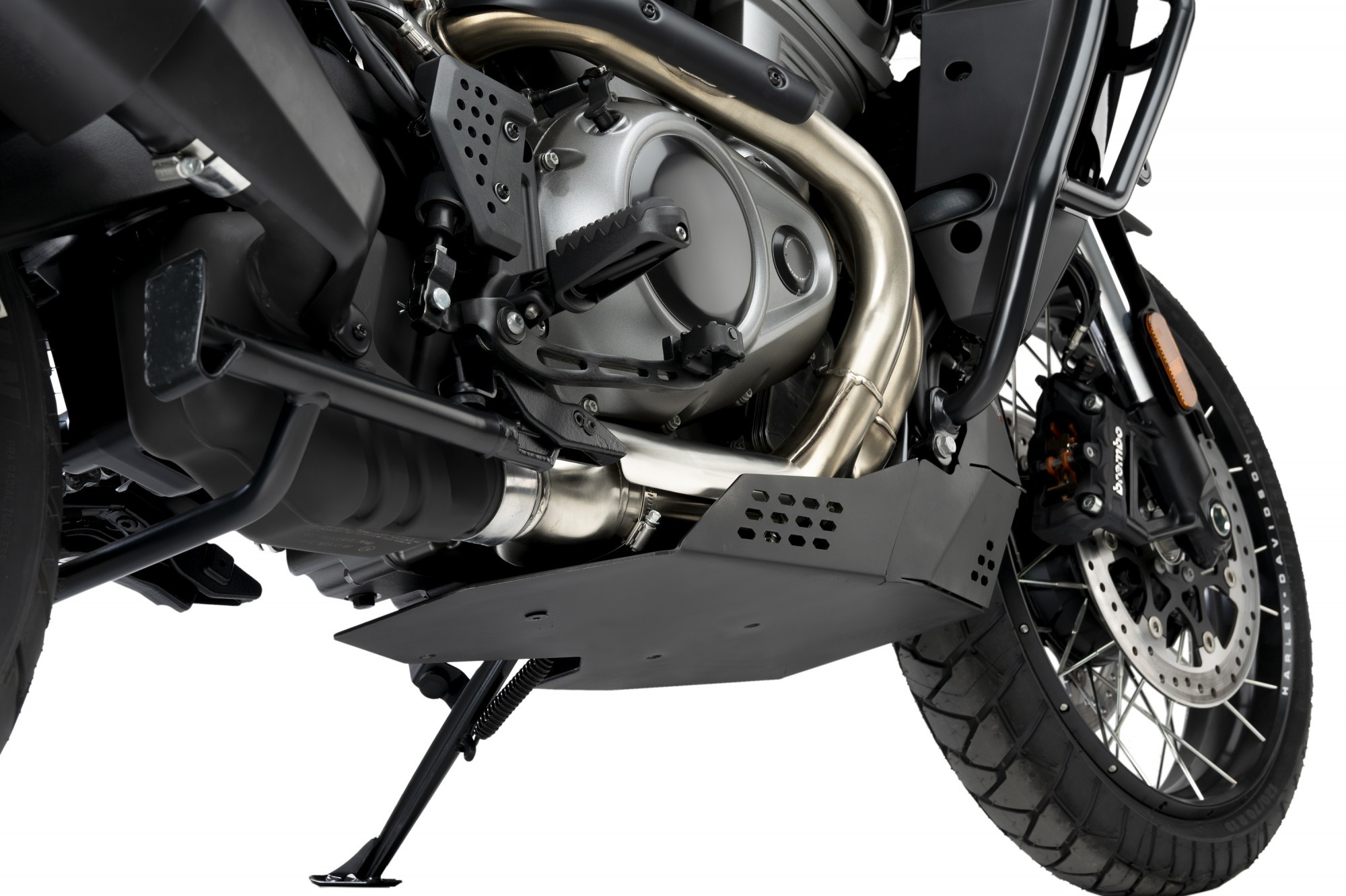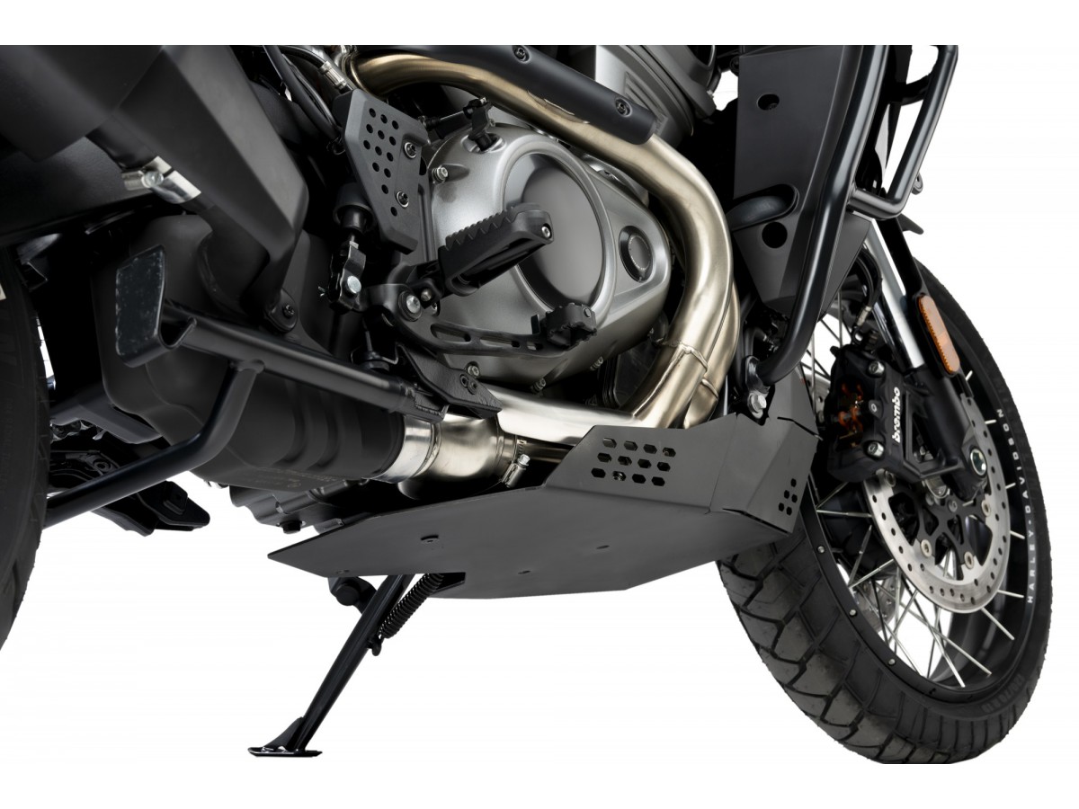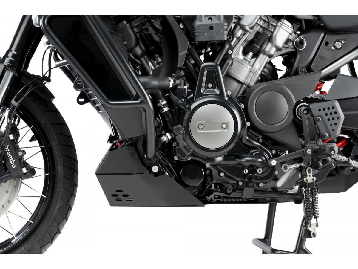 Aluminiowa płyta pod silnik chroni elementy motocykla przed uszkodzeniem podczas jazdy off road.