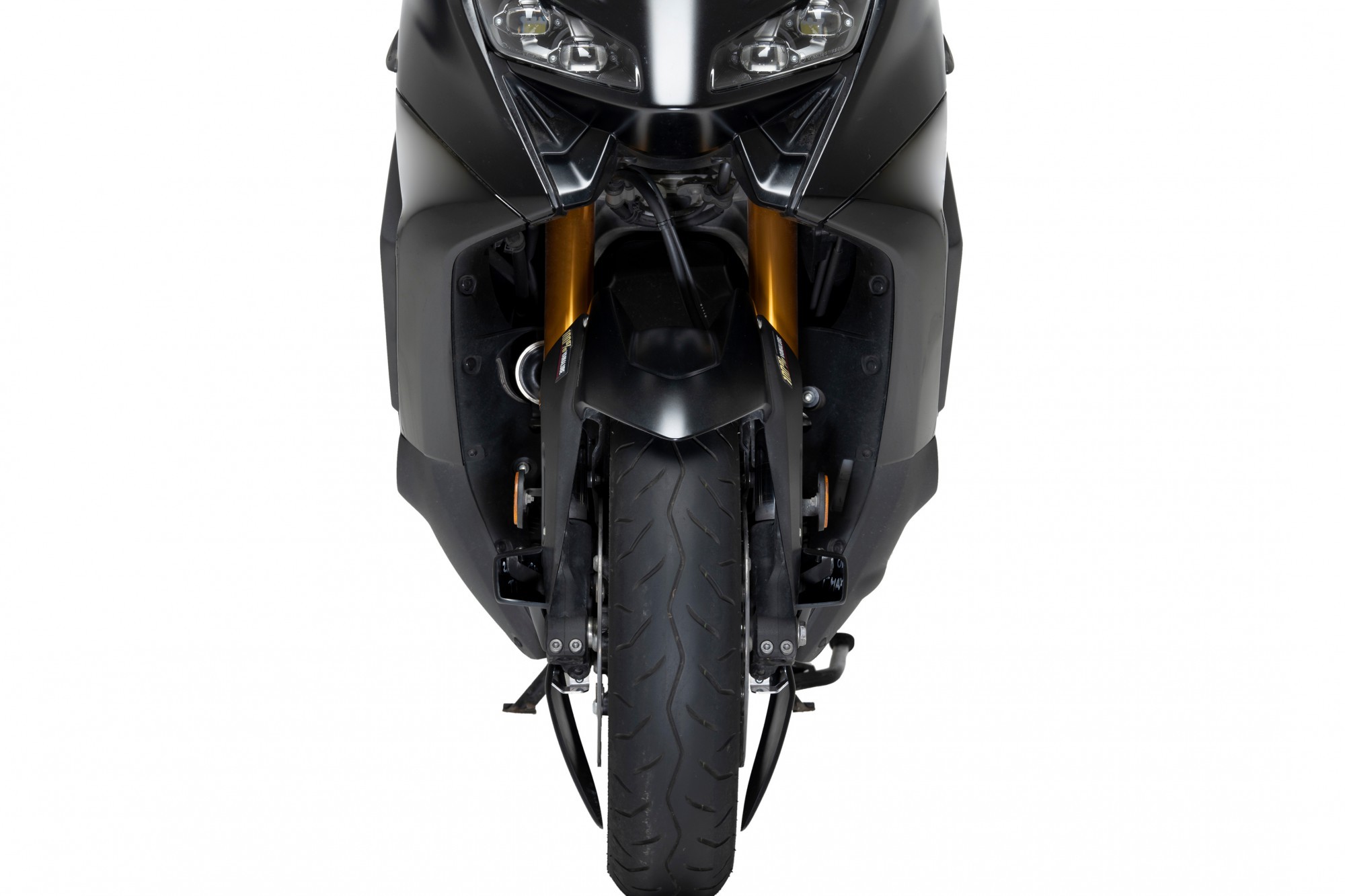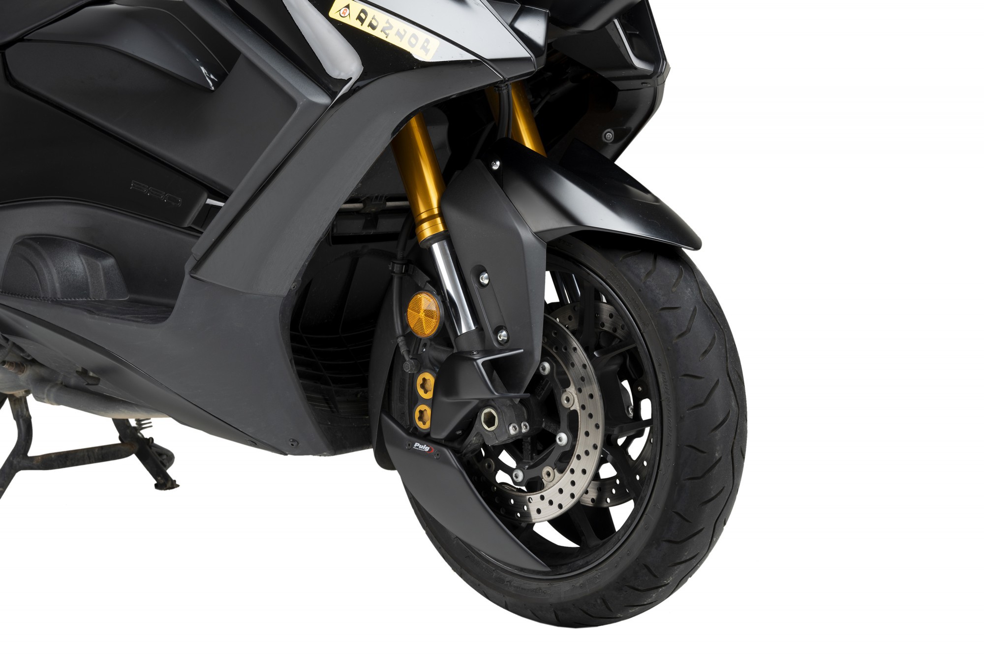 Chłodnica nadaje sportowy, spersonalizowy wygląd motocykla, poprawia wydajność hamowania i zmniejsza turbulencje przy przednim kole, tworząc częściową osłonę koła./p>
