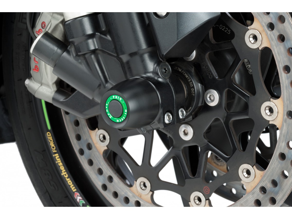 Protektory osi kół przednich - dodatkowe zabezpieczenie motocykla w razie nieprzewidzianych zdarzeń.